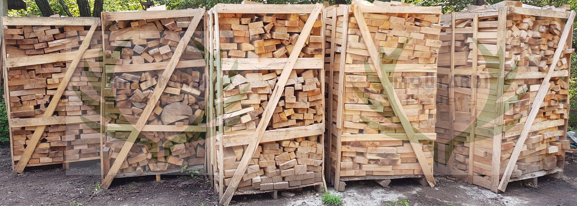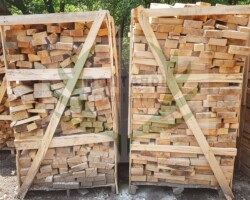 Le mode d’emballage, comme dans le cas du bois de chauffage fendu, est en palettes standard de 1x1x1,8 m, seulement comme dans le cas de ce type de bois de chauffage, les palettes n’ont plus 1 mc. mais 1,3-1,4 mc. mais puisqu’il privient du sciage, les angles du bois sont à 90° et la disposition dans la palette se fait avec beaucoup moins de vides d’air par rapport au bois de chauffage fendu.