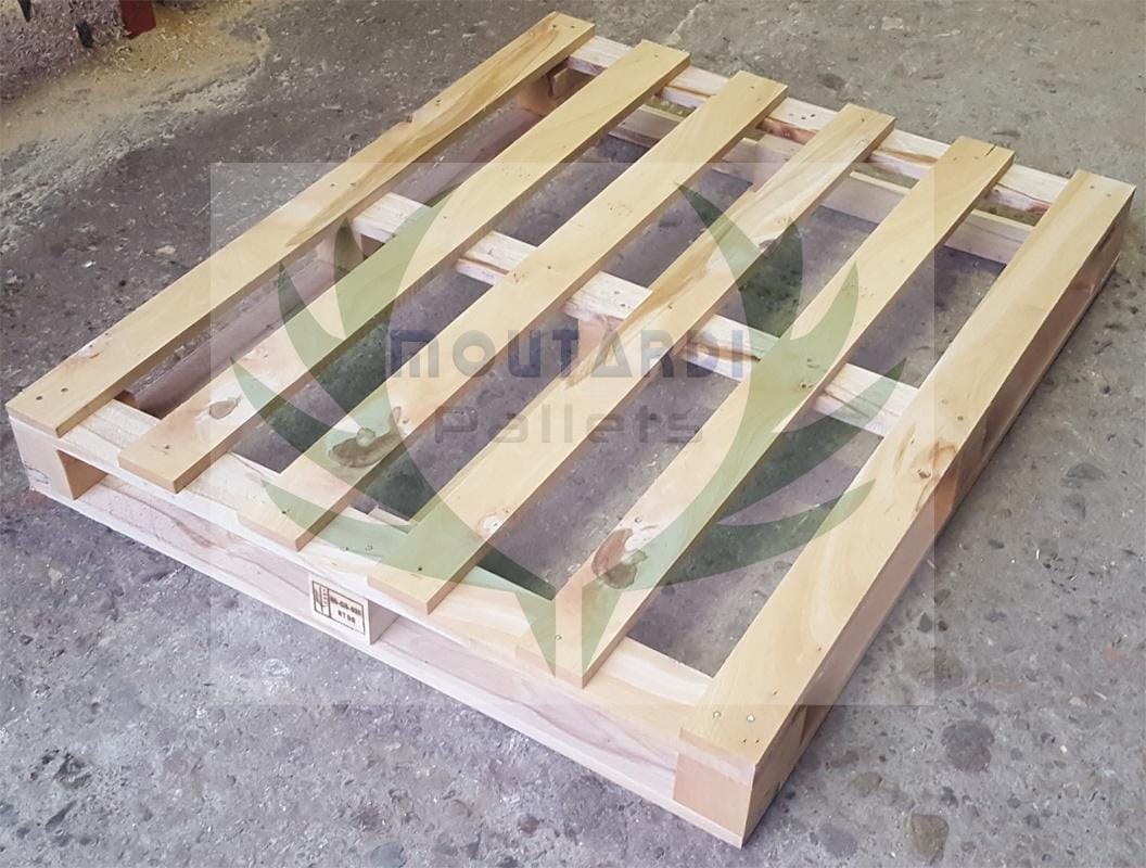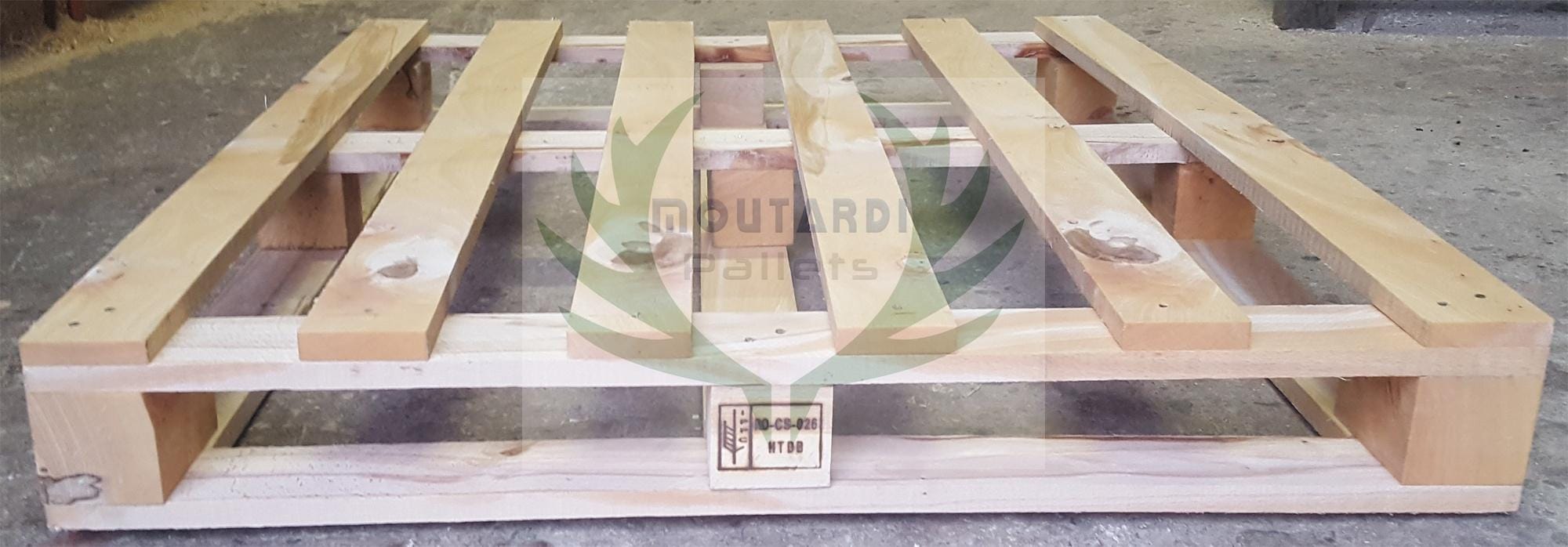 La palette peut avoir 5, 6 ou 7 planches sur sa face supérieure et elle peut être fabriquée à partir de différentes essences de bois.
