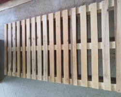 Notre société produit des palettes atypiques à partir de dimensions minimales de 600 mm. jusqu’à des dimensions maximales de 6000 mm. La largeur des planches de ce type de palettes peut commencer à partir de 70 mm. et atteint jusqu’à 120 mm. tandis que l’épaisseur peut être comprise entre 13 et 22 mm. et la largeur et la longueur des jambes (blocs) peuvent également commencer à partir de 70 mm. et atteint jusqu’à 120 mm. avec hauteur de 70 à 100 mm..