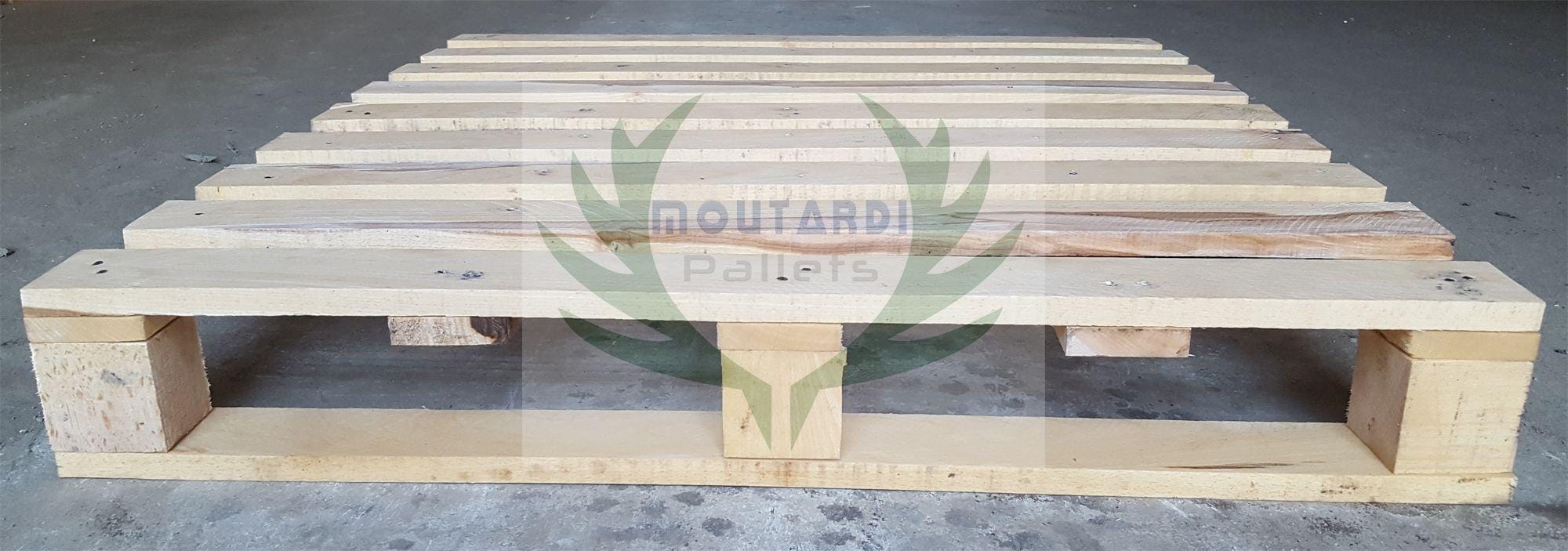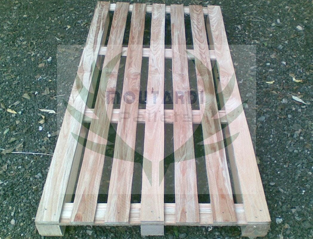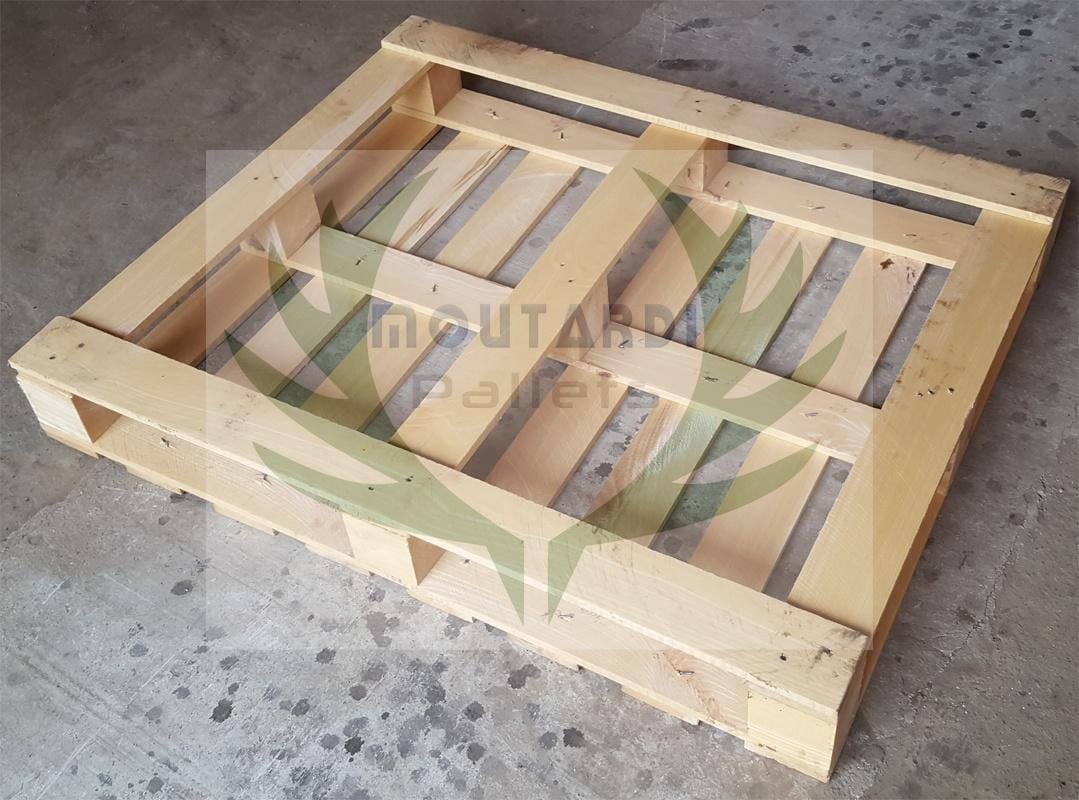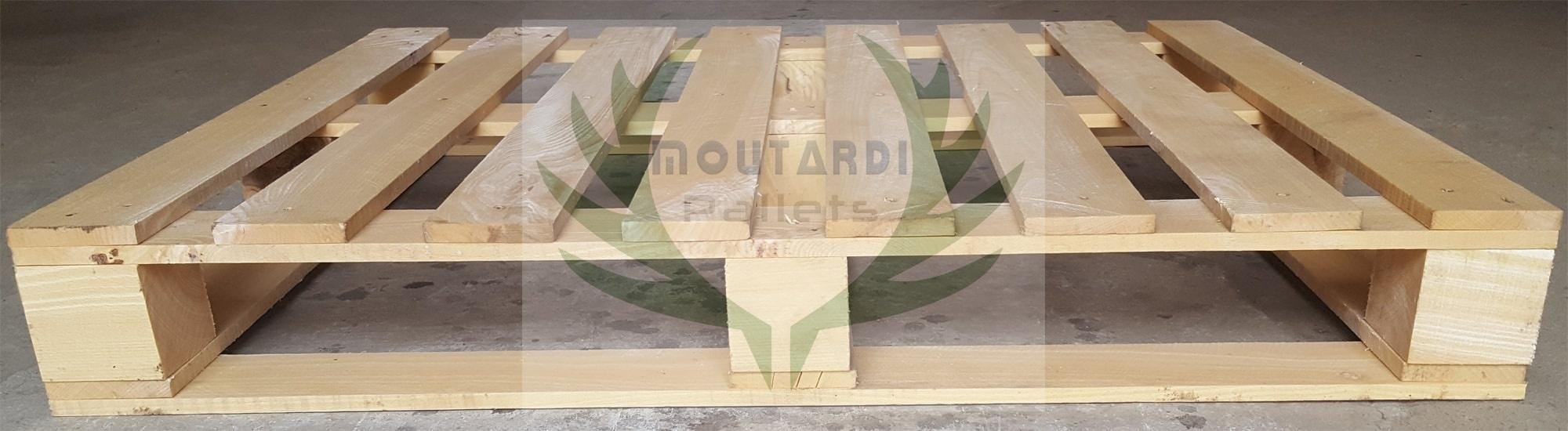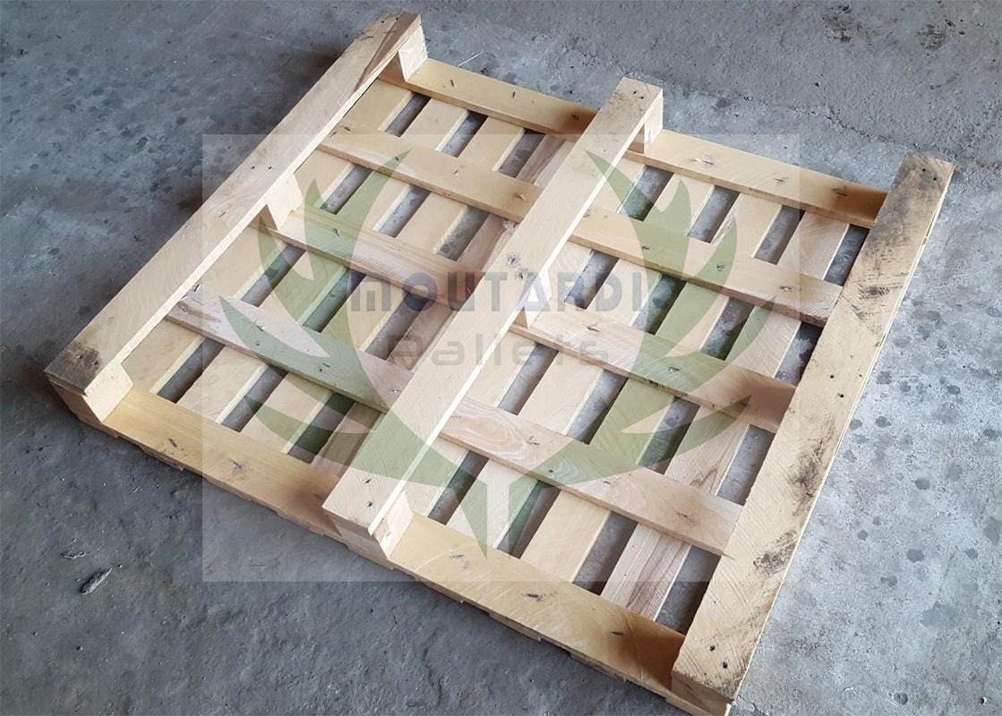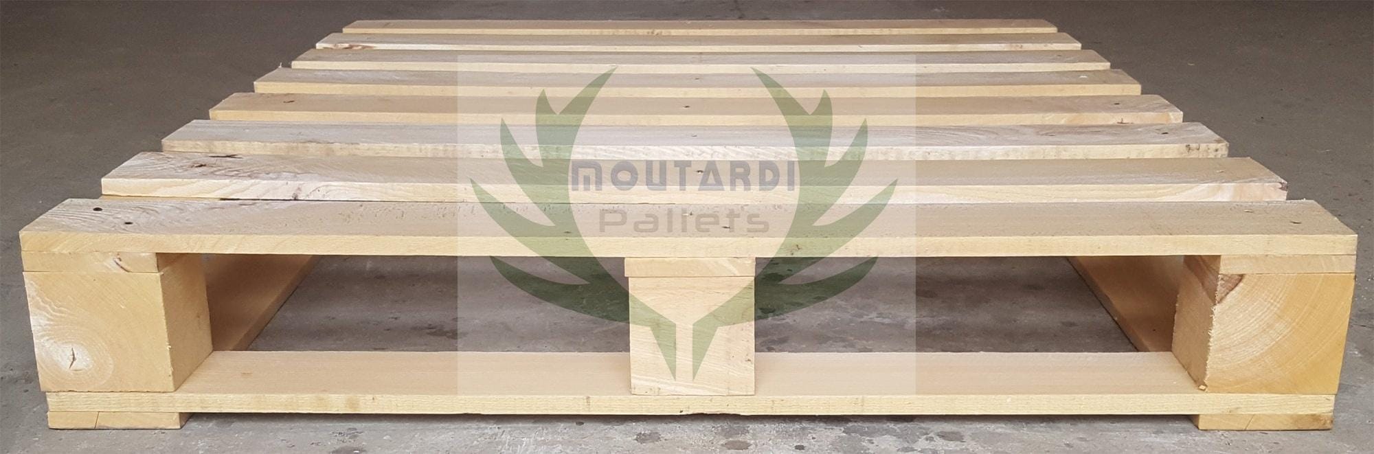 Un autre exemple serait une palette atypique qui a 5 ou 6 planches sur le fond (les planches du « plancher ») au lieu des 3 habituelles palettes standard ou europalettes. Les 5 ou 6 planches du plan inférieur sont placées à la fois le long et sur le côté de la palette afin d’augmenter sa résistance à la flexion. Cela est nécessaire dans certains cas lorsque les palettes sont stockées sur des rayonnages à 2 barres (sans la barre au milieu) ou lorsque les marchandises sur la palette dépassent sa surface et sont prises dans le ruban (lorsque le ruban est tendu, la palette standard peut plier dans le temps que cette palette résiste à la flexion). Si vous allez dans la section « Photos » de ce produit, vous pouvez voir des photos de cette palette de l’exemple (ce sont les photos de la palette aux dimensions 1200×800 mm.).