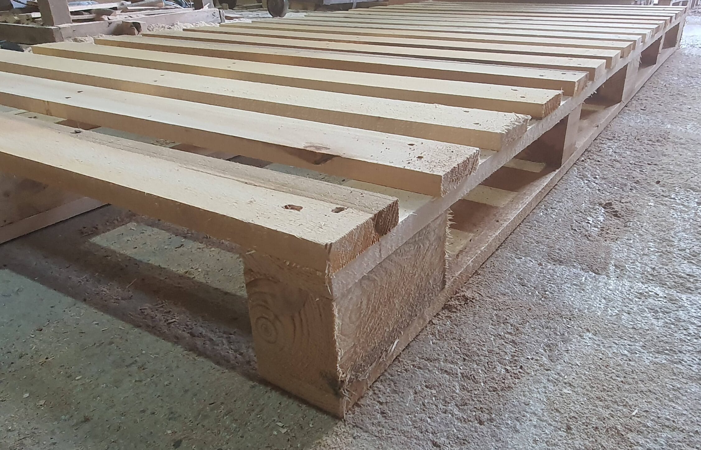 Une grande partie de notre capacité de production est allouée aux palettes atypiques. Au fil des années, notre entreprise s’est spécialisée dans ce type de palettes tant sur la partie technique (matières premières, équipements, conception, logiciels) qu’au niveau de la formation du personnel.