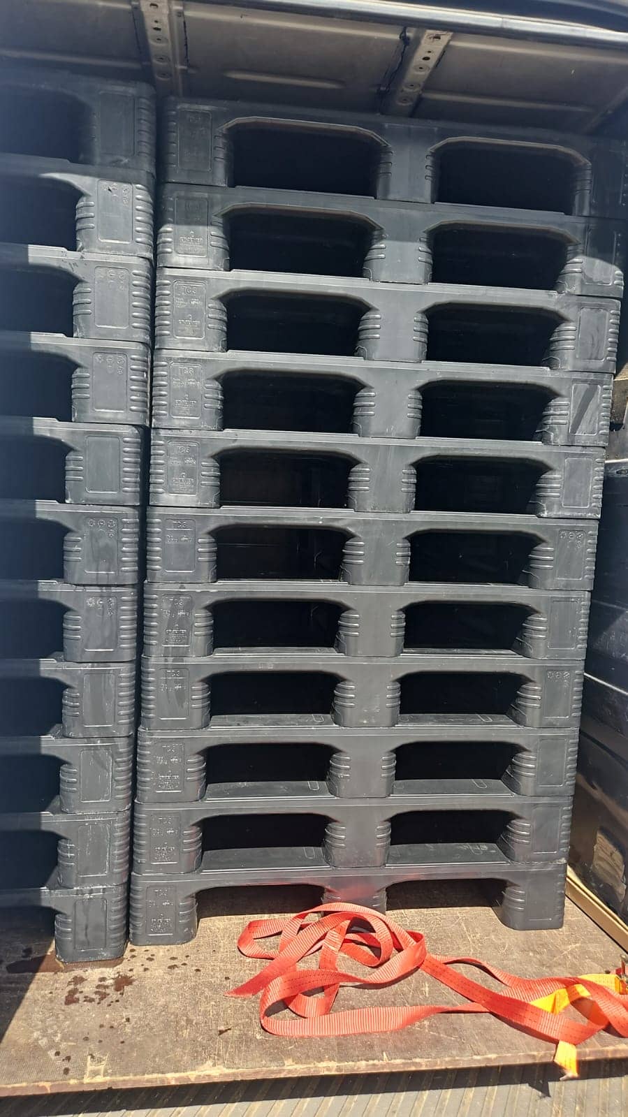 Ces palettes offrent des avantages pour leur transport car, contrairement aux palettes en bois ou les europalettes qui ont un poids plus élevé et sont empilées par paires (elles sont placées dans la pile une avec les pieds vers le haut et une autre avec les pieds vers le bas), les palettes en plastique ont un poids beaucoup plus faible et sont empilées dans un nid (l’une dans l’autre). Pratiquement deux fois plus de palettes en plastique que de palettes en bois sont placées sur le même camion.