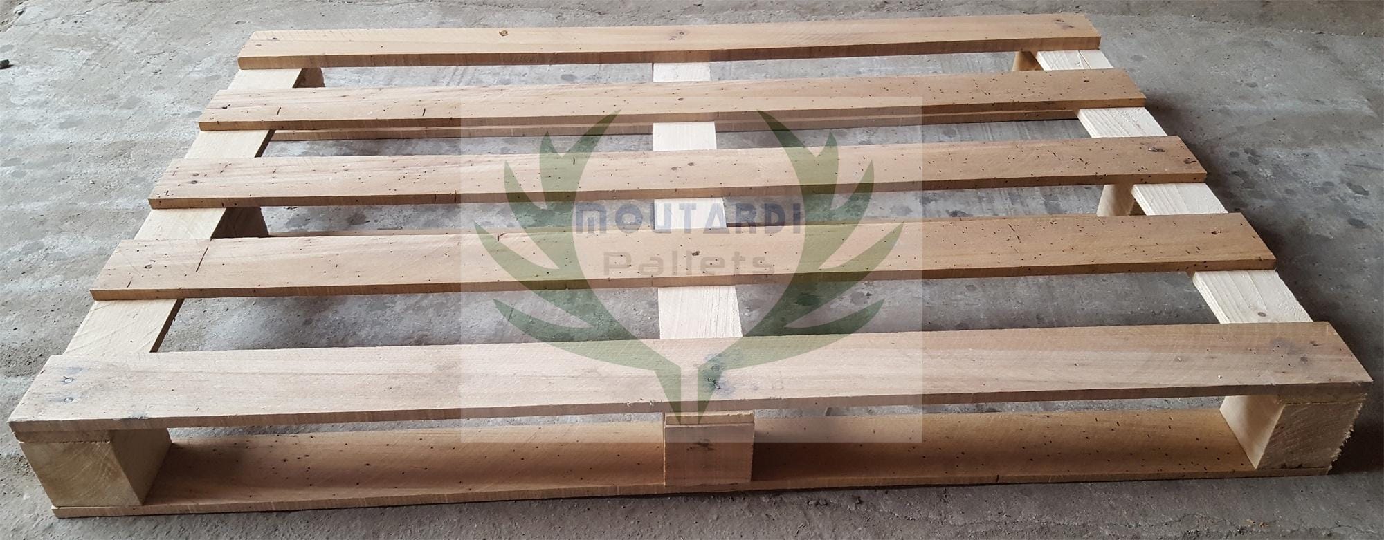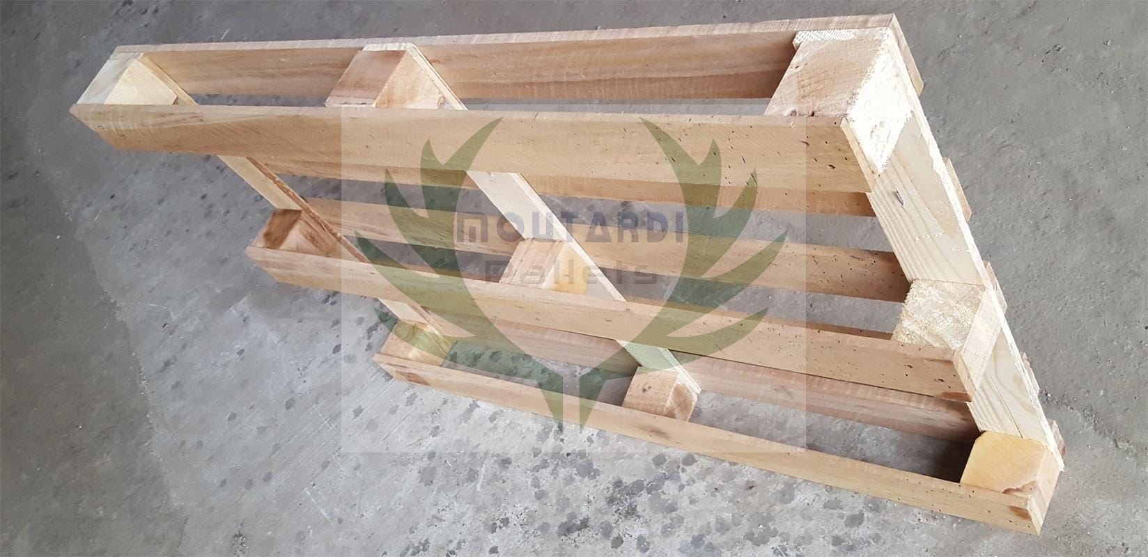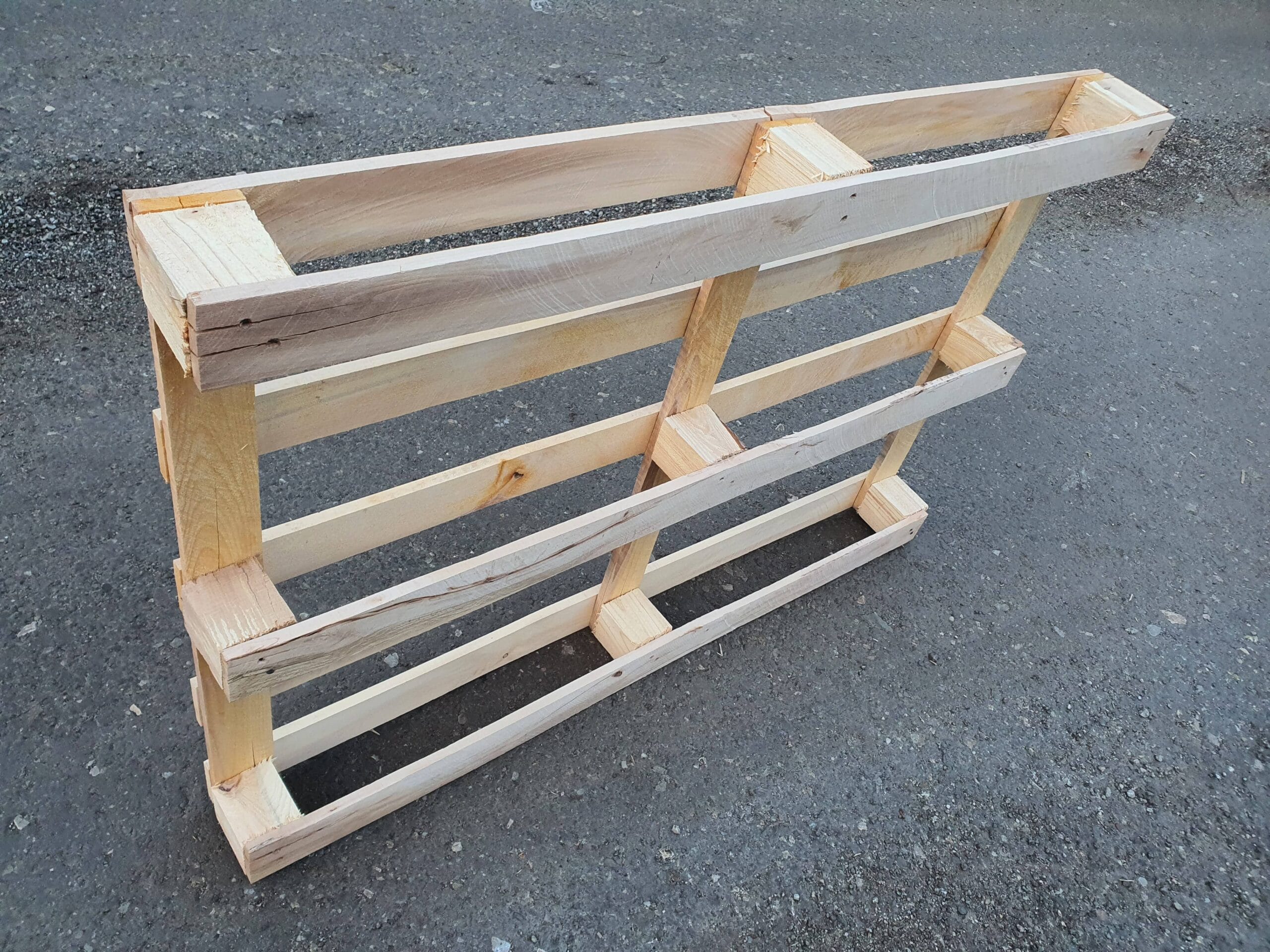 Quant à la largeur/épaisseur des planches, dans le cas des palettes à usage unique, la largeur est généralement de 50 à 80 mm. et épaisseur de 13 à 15 mm. Par exemple, si les palettes sont en bois dur (comme le hêtre, le chêne, le charme), utilisez une planche d’une largeur de 50 à 70 mm. et épaisseur de 13 mm. et s’ils sont produits à partir d’essences tendres (comme le sapin, le pin, l’épicéa, le peuplier, le tilleul, etc.), vous pouvez utiliser une planche de 70 à 80 mm de large et d’une épaisseur de 13-15 mm. Même si elles ne sont utilisées qu’une seule fois, ces palettes, partant de l’essence et de la qualité du bois, sont calibrées de la même manière que les autres palettes ou europalettes: selon les marchandises, le mode d’utilisation, la manutention, le stockage, le transport.