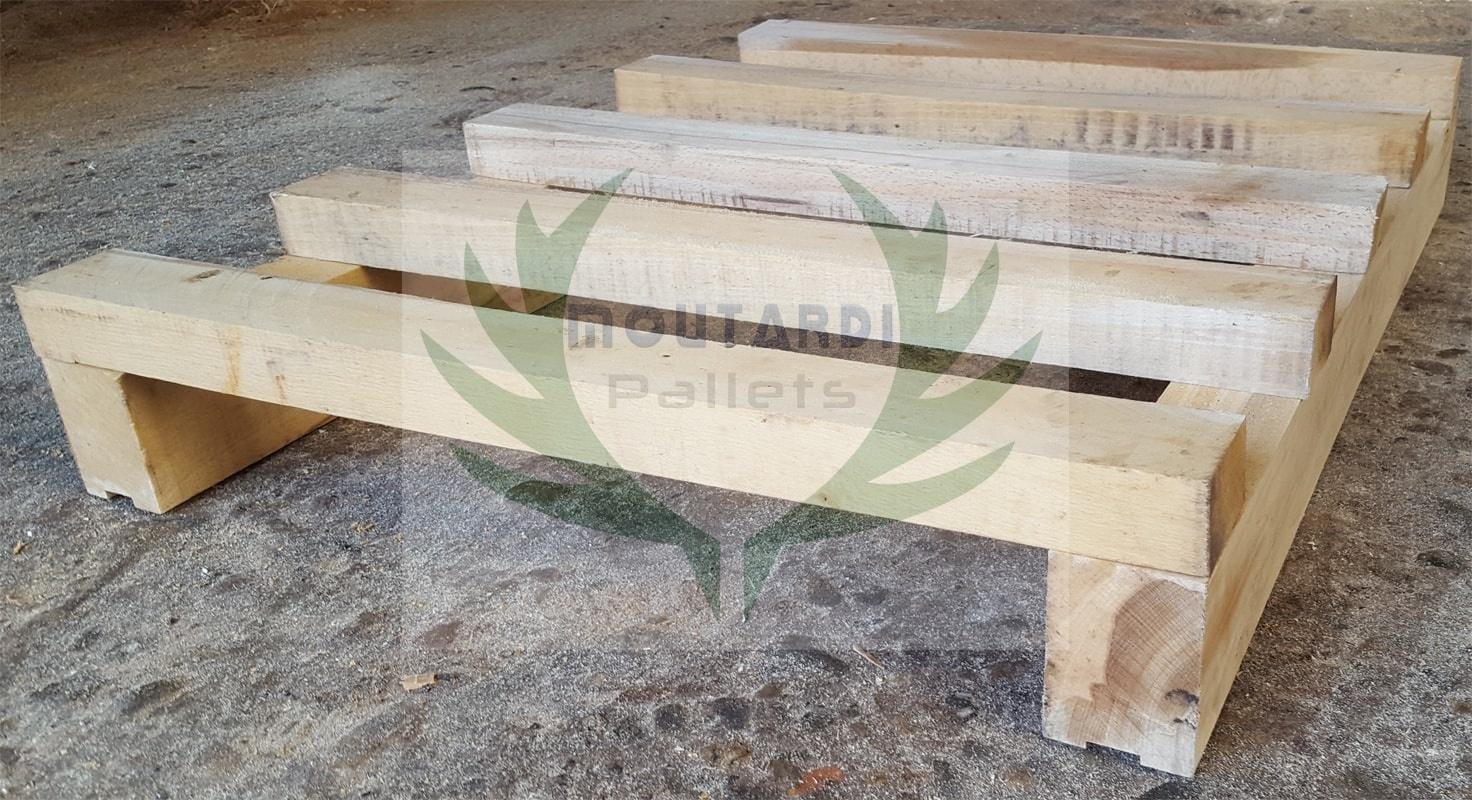 Les barres avec et sans canal peuvent être en hêtre ou en résine selon le type de marchandise et l’utilisation de la palette. Si les marchandises sont plus longues ou facilement périssables, le résineux est recommandé comme matériau utilisé, tandis que le hêtre est recommandé pour les matériaux très lourds sur des palettes plus petites.