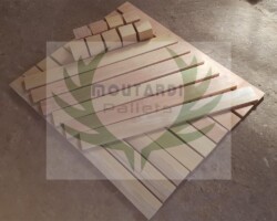 Habituellement, les jambes de la palette (moules) sont produites sous forme de longues barres, avec des longueurs de 1,5-2 m., qui ont deux des trois côtés du bloc, après cela à l’usine où les palettes seront produites, les barres sont sectionnées sur la dernière face du bloc. Ainsi, les éléments de palettes pour moules peuvent être transportés sous forme de colis similaires à ceux des sciages. Sur la demande du client, les moules peuvent être découpés sur les 3 faces, auquel cas le conditionnement se fait en caisses. Nous ne le recommandons pas en raison du coût de production beaucoup plus élevé et, respectivement, du prix final plus élevé.