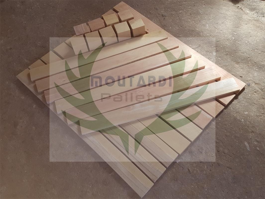 | Pieds de palette (blocs) | sous forme de barres (semi-finis – 2 faces) ou de cubes (finis – 3 faces) |
